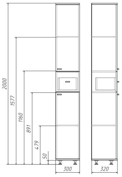 Пенал напольный "Домино" Идеал с ящиком правый 30 см